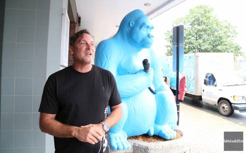 Il s’agit d’un gorille de 2,5 mètres de haut et deux mètres de large, qui trône sous la marquise du Palace.