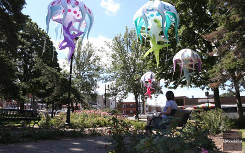 Le toit de la bibliothèque Paul-O.-Trépanier, rue Dufferin, est désormais coiffé de tentacules de pieuvre dont la hauteur atteint six mètres. Une girafe rouge, haute de quatre mètres, surplombe pour sa part la place Johnson, rue Principale. Au parc Miner, aussi rue Principale, ce sont plutôt quatre méduses illuminées, d'une dimension de trois mètres par deux mètres, qui ont fait leur apparition...