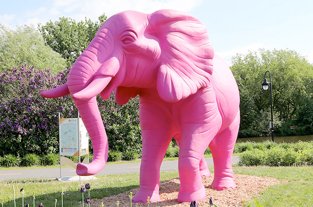 ANIMATION. La communauté animalière ludique de Granby va s’agrandir. Après la girafe rouge, le gorille bleu et l’hippopotame vert, c’est au tour d’un éléphant à venir joindre les rangs du groupe d’œuvres permanentes dans le cadre de la campagne d’image de marque Granby est zoo.