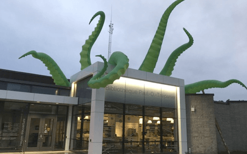 À la bibliothèque Paul-O.-Trépanier, des tentacules de pieuvre verte ont été apposés sur le toit de l'immeuble. Du côté de la place Johnson, les visiteurs pourront y retrouver une girafe rouge d'une hauteur de quatre mètres...