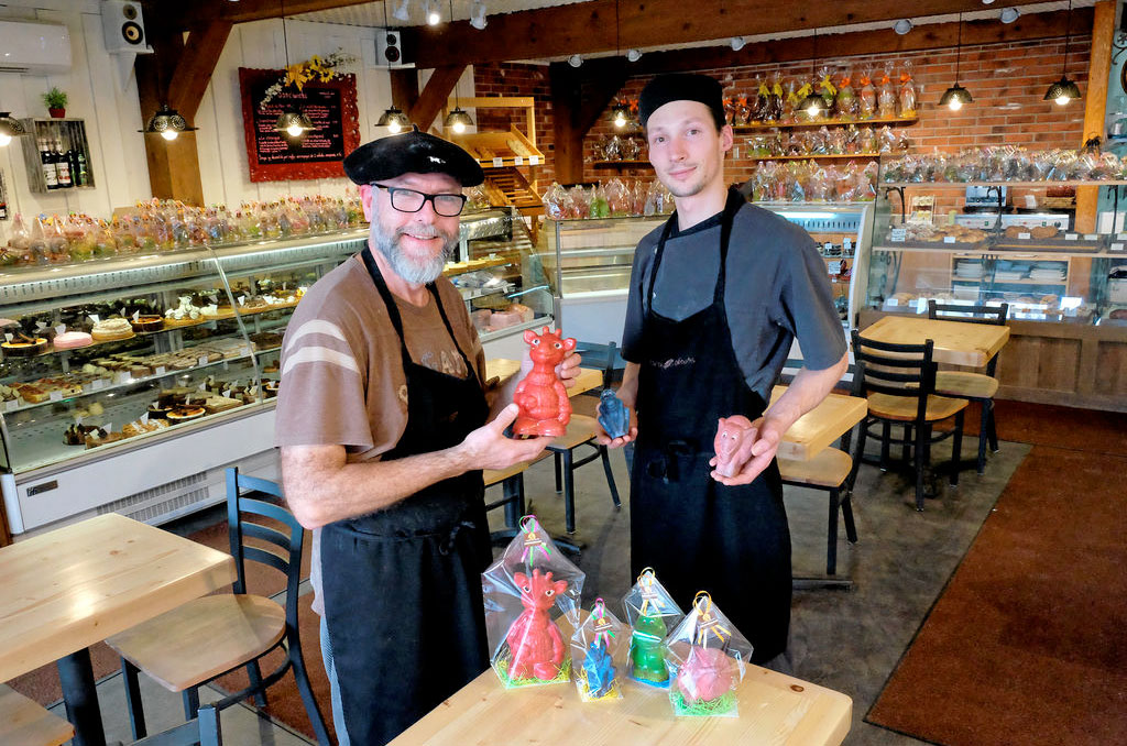 « Autant aussi promouvoir la Ville par le chocolat », a lancé jeudi le pâtissier Vincent Heral, à l’origine de cette initiative gourmande réalisée avec la collaboration d’Hugues Pannier, copropriétaire de la boulangerie-pâtisserie de la rue Principale.